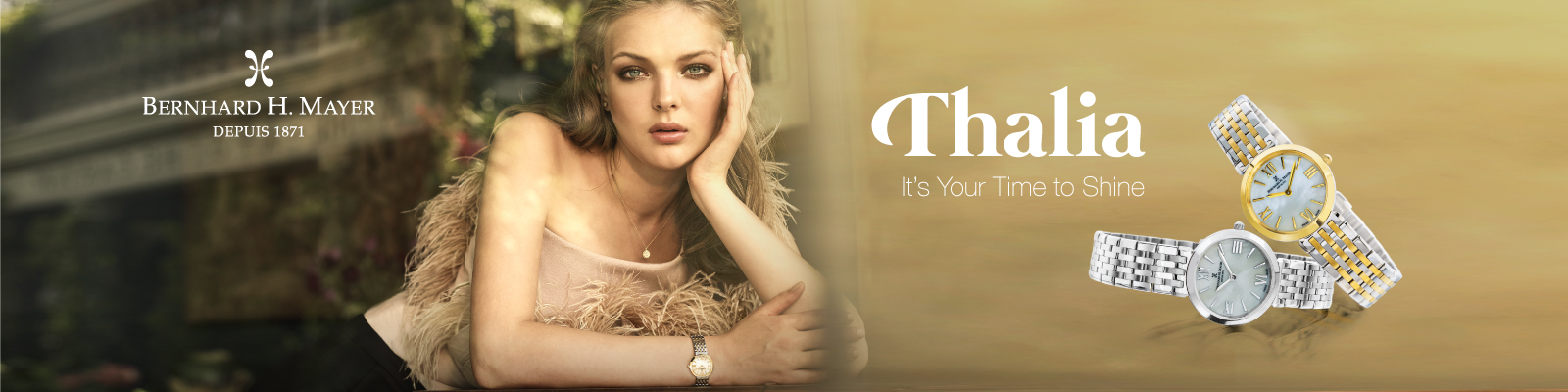 Beauty meets class with the Bernard H. Mayer ® Thalia ladies’ watch. With its slim and elegant exterior, it exudes a feminine aura that every modern woman will love. It comes in two variants, one in stainless steel and the other in a two-toned yellow-gold plated. Both designed with a Mother of Pearl dial that gives off a delicate and classic detail, plus its unwavering quality-performance that perfectly encapsulate sophistication, this Swiss-made masterpiece is one that every woman should own.